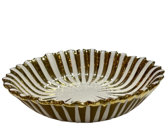 Bol à Salade en Forme de Fleur à Rayures Blanches et Dorées