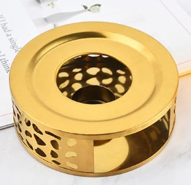 Chauffe-Théière, Chauffe-Thé en Acier Inoxydable Brossé avec Porte-Bougie Chauffe-Plat Or