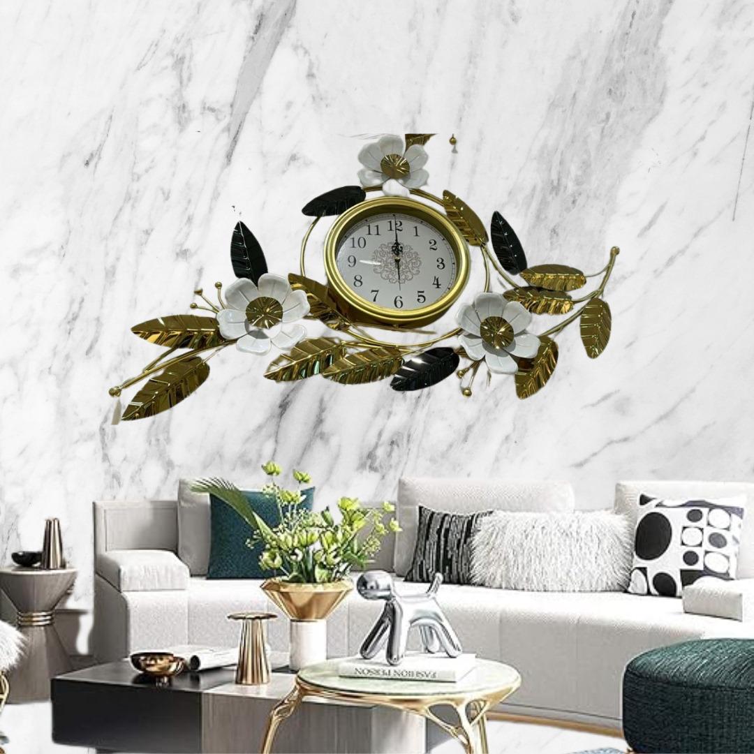 Nouvelle horloge murale de luxe lumière nordique salon décoration de la maison personnalité créative horloge à feuilles en fer forgé