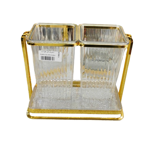 Porte-Ustensiles en Verre avec Cadre Doré – Organisation Élégante pour Votre Cuisine