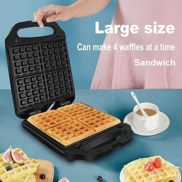 Puissance de 1000W – La puissance de 1000W permet un chauffage rapide et une cuisson uniforme. Vous obtiendrez des paninis parfaitement grillés, des sandwichs chauds avec un extérieur doré et croquant, ainsi que des gaufres moelleuses à l’intérieur et croustillantes à l’extérieur en quelques minutes seulement.